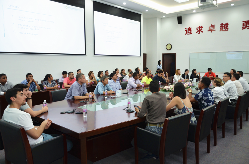 當天下午,拉美考察團訪(fǎng)問(wèn)了珠海大橫琴股份有限公司,了解了橫琴新區在國家“一帶一路”發(fā)展戰略、“粵港澳大灣區”發(fā)展戰略中的區位優(yōu)勢和重要作用,聽(tīng)取了工作人員對大橫琴股份的概況、園區概況以及橫琴自貿區的商貿政策等情況的介紹。