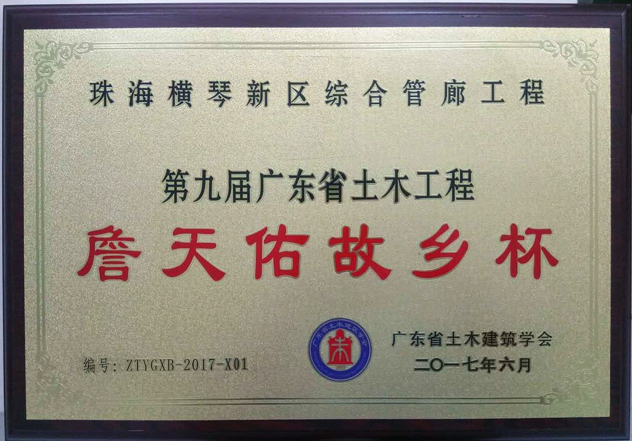 近日,由大橫琴股份負責建設的橫琴新區綜合管廊項目通過(guò)廣東省土木建筑學(xué)會(huì )評審,榮獲第九屆廣東省土木工程“詹天佑故鄉杯”獎。